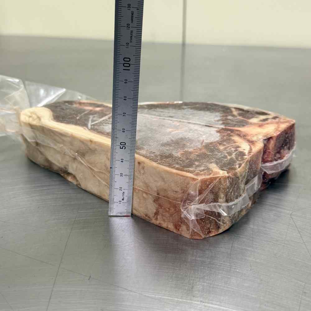 世界的に評価されているケープ・グリムビーフは、放牧主体で育てられ、クセのないクリーンな味わいと安定した品質が特長。厚切りのTボーンは、BBQやご自宅での本格ステーキディナーに最適です。